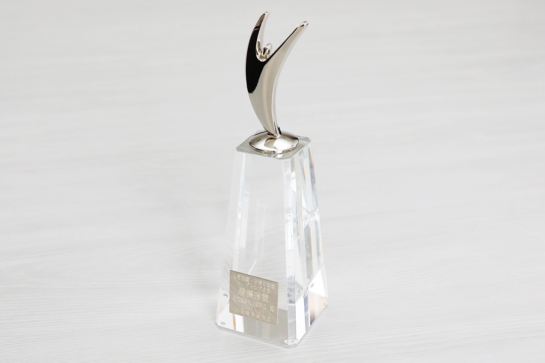 徳島県知事飯泉嘉門氏による開会のあいさつに続き、表彰式。表彰状とクリスタルのトロフィーをいただきました。当法人のほか、株式会社シニアライフアシスト様(香川県)、大王製紙株式会社様(愛媛県)、株式会社四国銀行様(高知県)の3社が優秀賞を受賞しました。