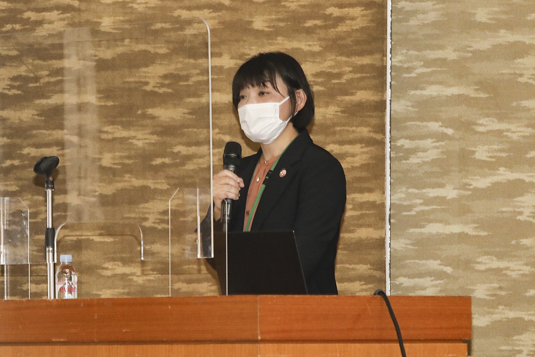 続いて、北池桂子が取り組み発表の場をいただいて登壇。「女性活躍推進・子育て支援への取り組み事例」と題してKIRARI WOMAN ネットワークの活動をはじめとした女性活躍支援と子育て支援、外国人財支援、働きやすい職場づくり、キャリア形成のプログラム、健康経営、地域貢献活動など、様々な活動や制度について発表しました。