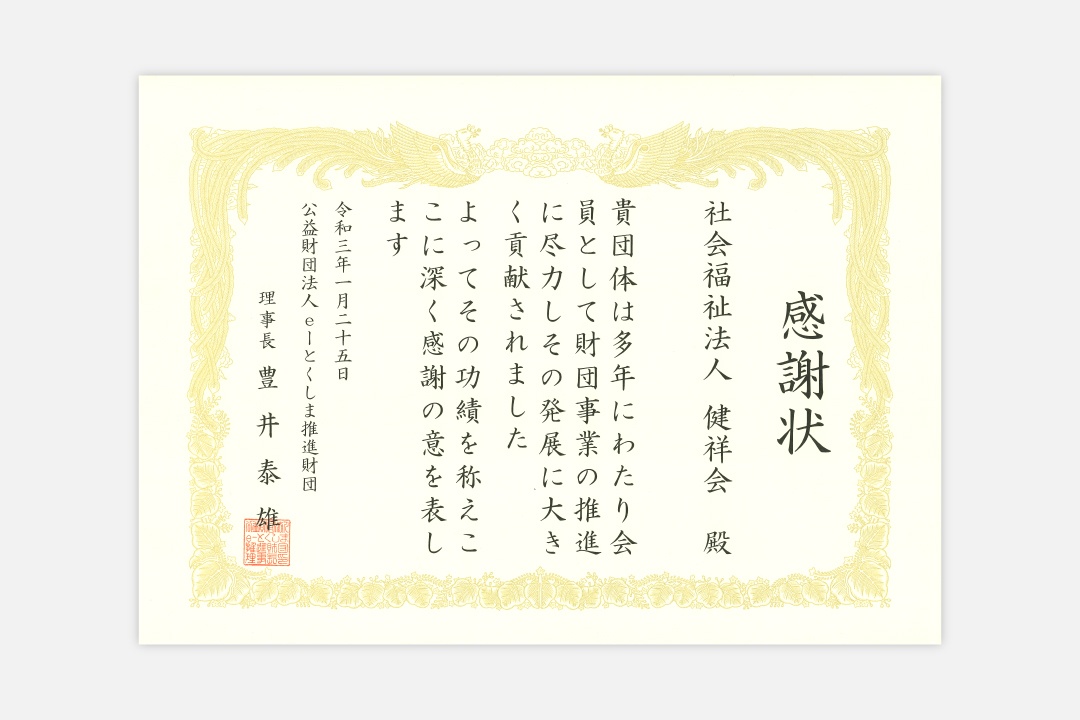 課題解決のツールとしてICTを効果的・積極的に利活用し、もっと豊かでもっと便利な暮らしと地域をづくりをめざす公益財団法人 e-とくしま推進財団。創設来16年間、県と連携して「e-とくしま推進プラン」及び「ICTとくしま創造戦略」を推進するとともに、徳島の情報を発信するポータルサイトの運営、学校のホームページや業務のシステム化支援、各種セミナーによる啓蒙活動、自治体クラウドサービスの推進支援など多岐にわたる活動を行なっています。健祥会グループも賛助会員として参加し、徳島の元気を応援しています。