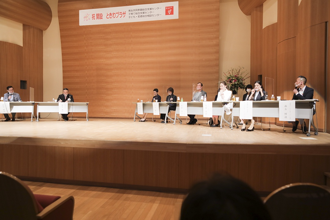 その後、「2030年、誰もが輝く徳島に向けて」と題して、男女共同参画会議会長 阿部頼孝氏をコーディネーターに、知事をオブザーバーに、トークセッションが行われ、6人のパネリストの皆さんが現場での実践や課題、未来への期待と展望などについて熱っぽく語り合いました。