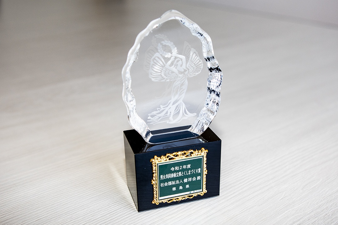 社会福祉法人健祥会が徳島県の「男女共同参画立県とくしまづくり賞」を受賞しました。この賞は、持続可能で多様性に満ちた社会の実現に向けて、女性活躍や男女共同参画の推進に顕著な功績のあった個人と団体に贈られるものです。
