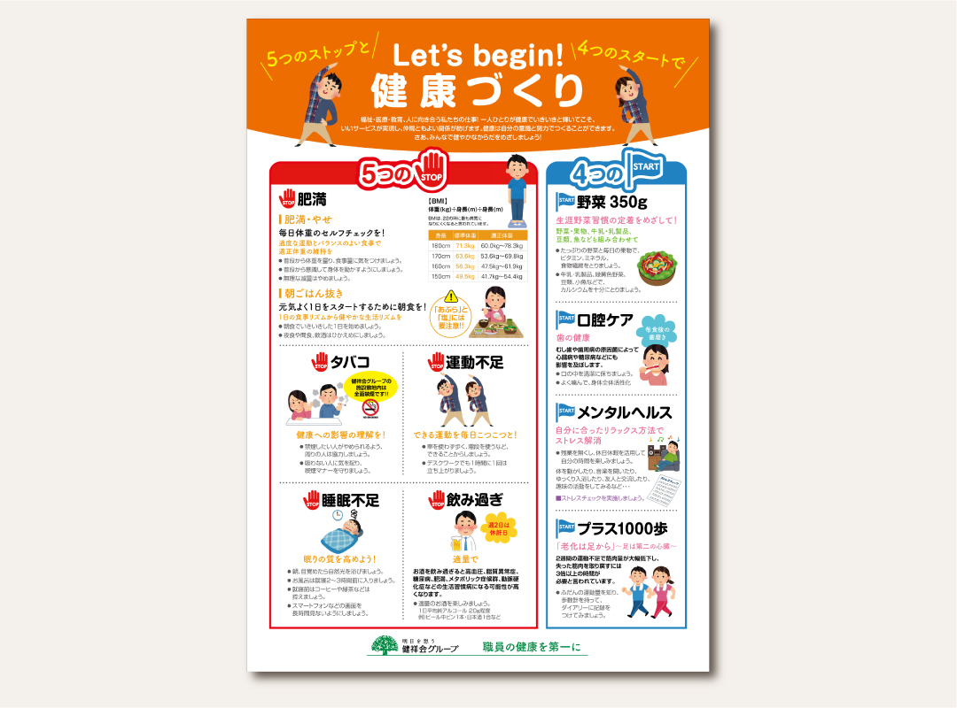 職員一人ひとりの健康の維持向上のために、健康づくりポスターを事業所内に掲示しています。