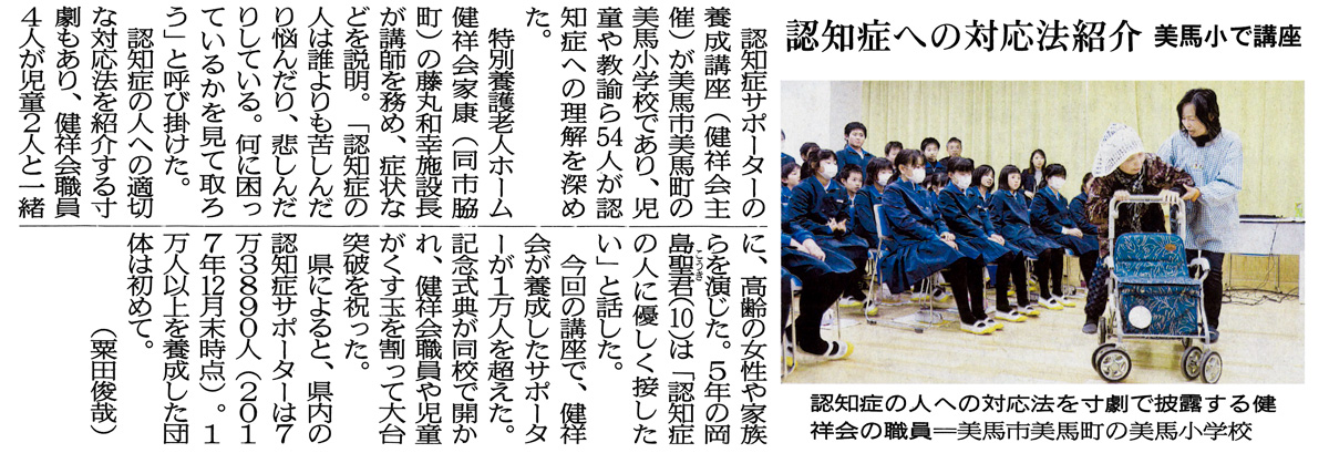 認知症への対応法紹介 美馬小で講座│徳島新聞