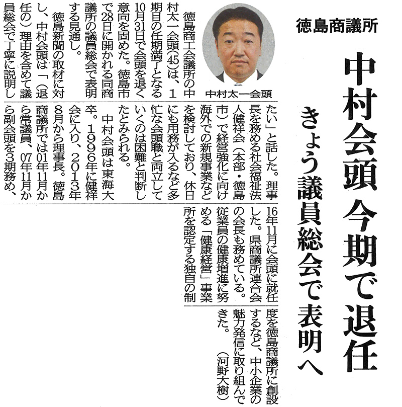 この記事は公開から1年以上経過しています メディア掲載記事 2019年6月28日(金) 中村会頭 今期で退任 | 徳島新聞 ■徳島新聞(2019年6月28日朝刊掲載) [記事公開日]2019/06/28(金) [最終更新日]2019/07/01(月) 中村会頭 今期で退任 | 徳島新聞 新しい記事 4法人が揃って 「健康経営」ダイヤモンド事業所に認定! 古い記事 健祥会グループ資料館・Tomorrow house 一般公開のお知らせ 過去の記事へ