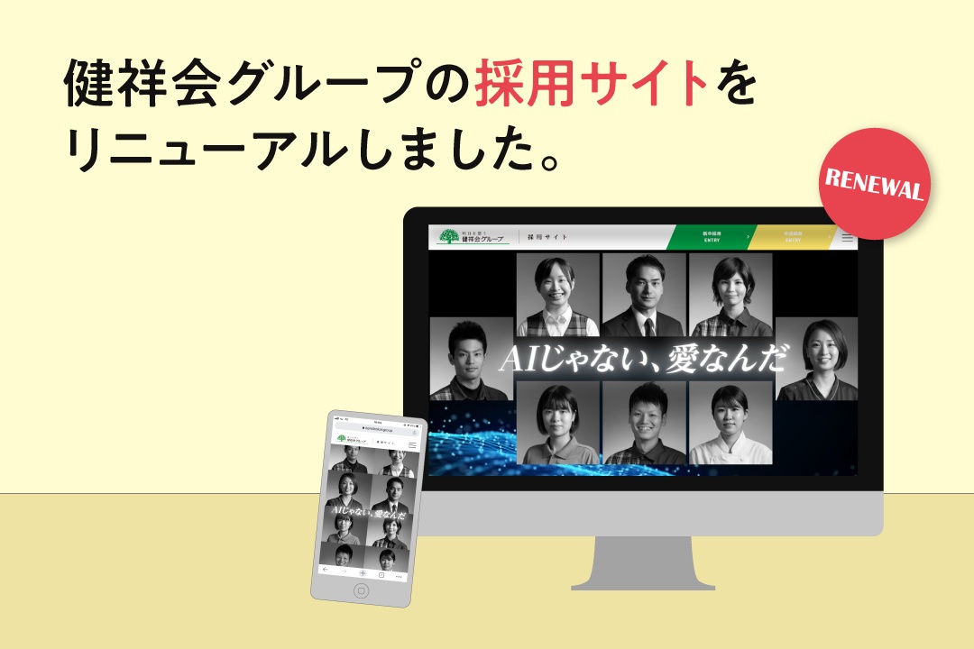 これまでグループホームページの中に設けられていた採用情報ページを大幅にリニューアルしました。サイトでは、様々な職種の若手職員にスポットを当てるとともに、健祥会グループの働きやすさをデータで示したり、福祉の仕事の魅力を伝えています。新卒の方、中途採用の方、様々な方にご覧いただき、ぜひ私たちの仲間になっていただけますように!