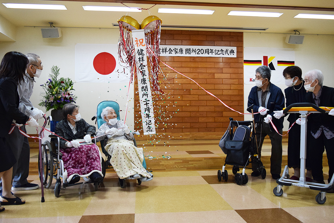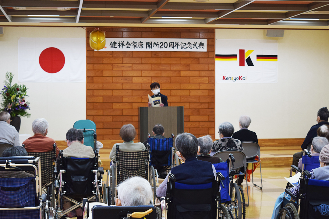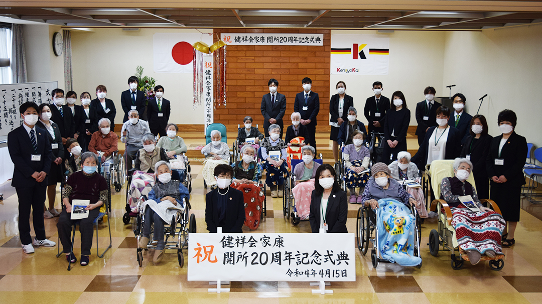 徳島県美馬市の特別養護老人ホーム健祥会家康が開所20周年を迎えました。20年という大きな節目にあたり、お支えくださる皆様への感謝と明日への想いを込めて記念式典を執り行うところですが、今般の徳島県の感染状況に鑑み、利用者様と施設職員だけでのお祝い会としました。