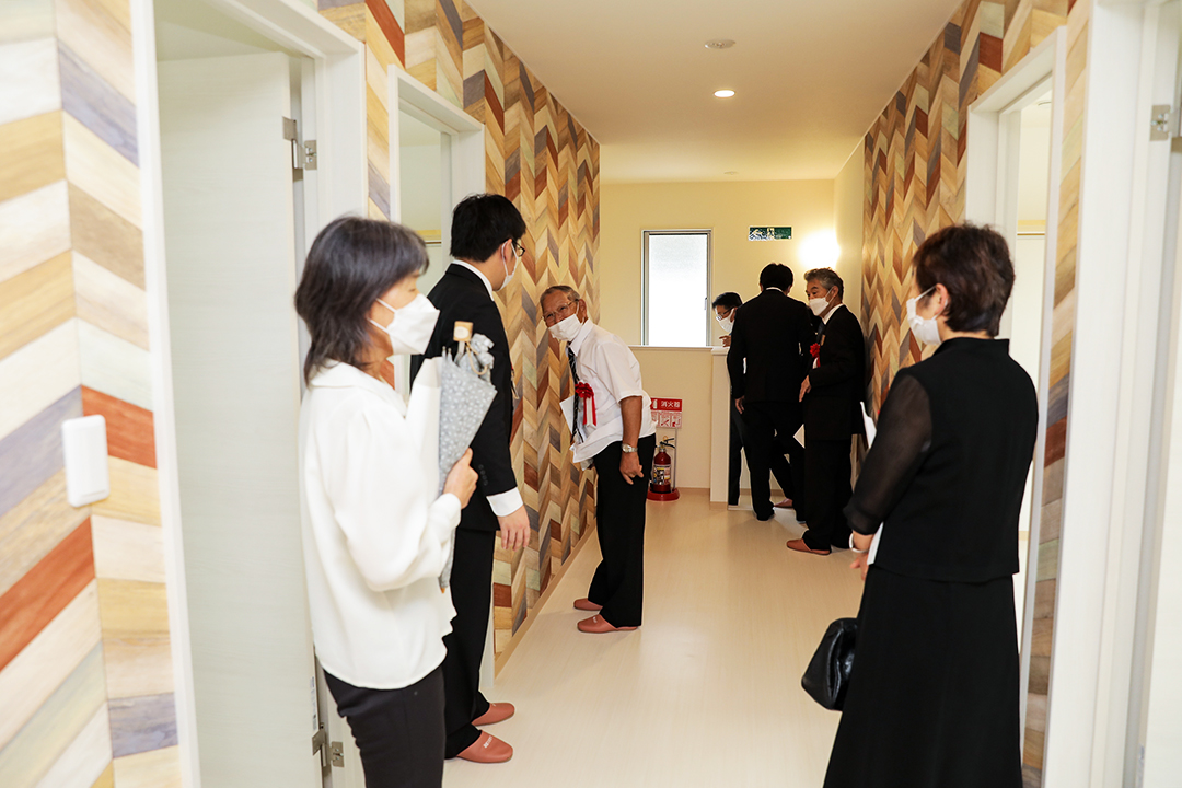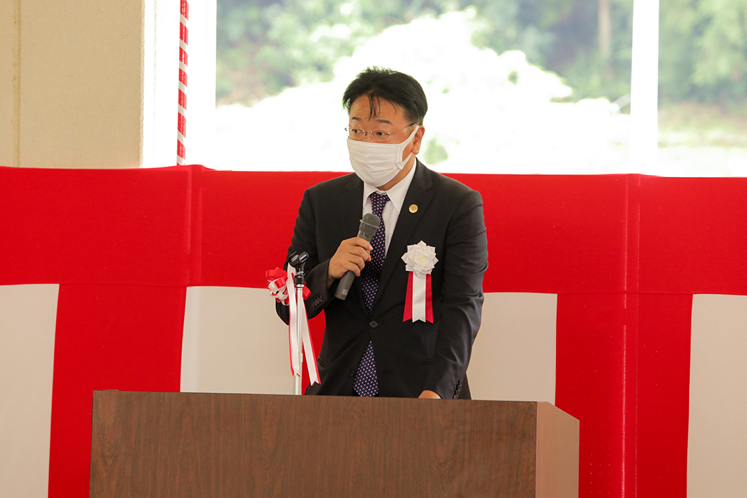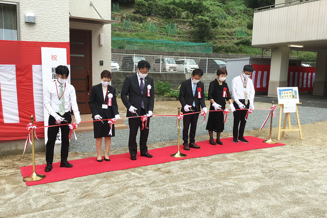 ご来賓として、那賀町から町長 坂口博文様をはじめ、地権者様、民生児童委員様、老人会会長様、元婦人部代表様らにお越しいただき、利用者様、家族様にも列席いただき、お祝いしました。コロナの感染拡大の局面であり、参加人数を最小限としての開催でした。