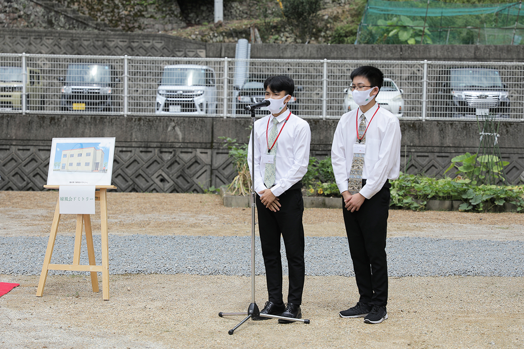 落成式に続いて行われた職員寮「緑風会ドミトリー」の入寮式。入寮予定の技能実習生も交えて、テープカットが行われました。緑風会ドミトリーは、木造(2×4工法)2階建・床面積199.42㎡/。1階2階それぞれにキッチンとバス・トイレがあり、各階に個室が5室設けられています。