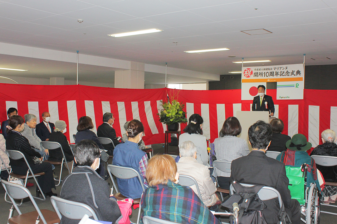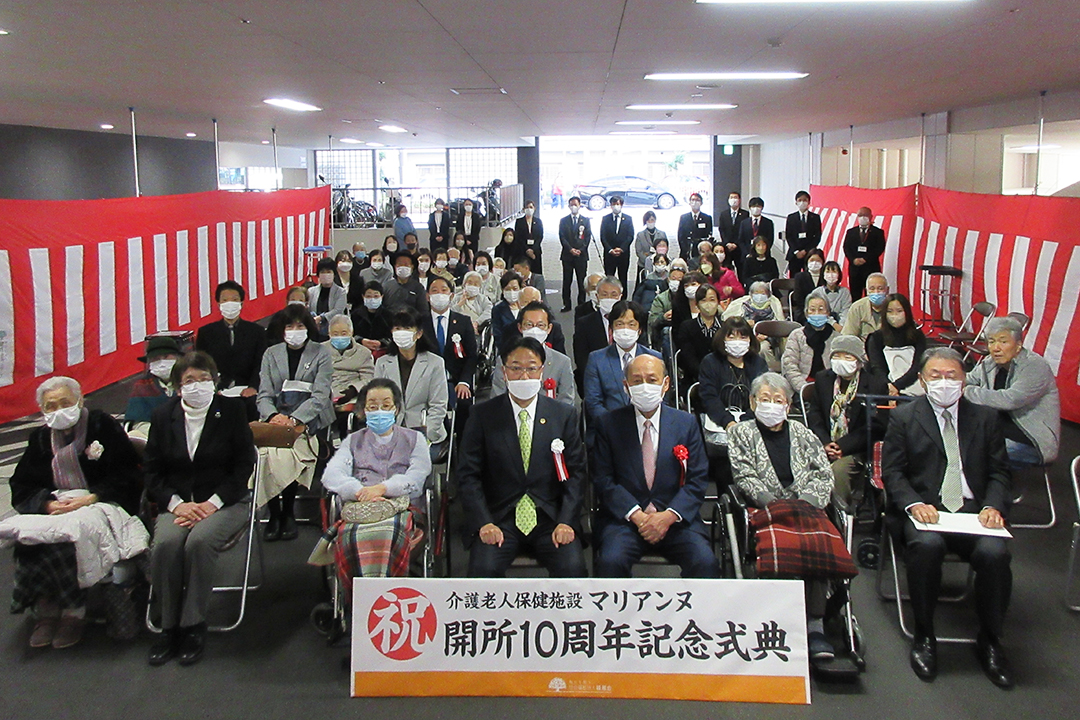 健祥会グループの京都府唯一の施設、介護老人保健施設マリアンヌが、10周年を迎えました。開所以来お世話になっている、前参議院議員二之湯智様、京都府議会議員二之湯真士様、京都市会議員森田守様をはじめ、協力医の先生方、地域の皆様にご臨席いただき、記念式典が開催されました。