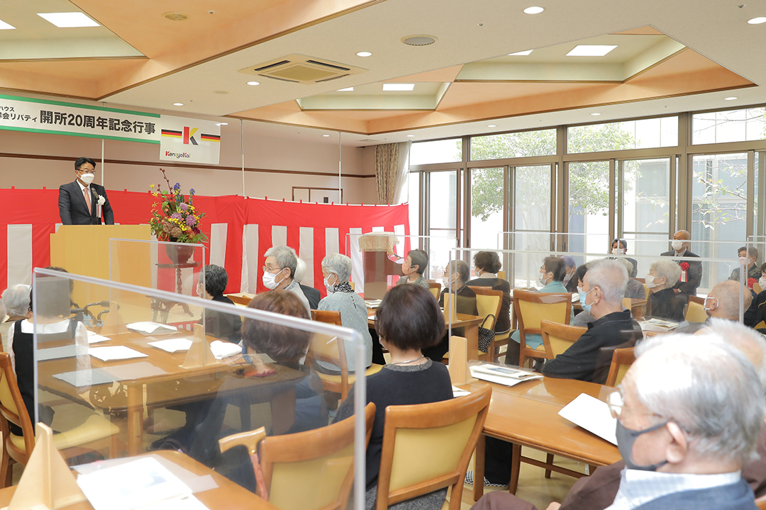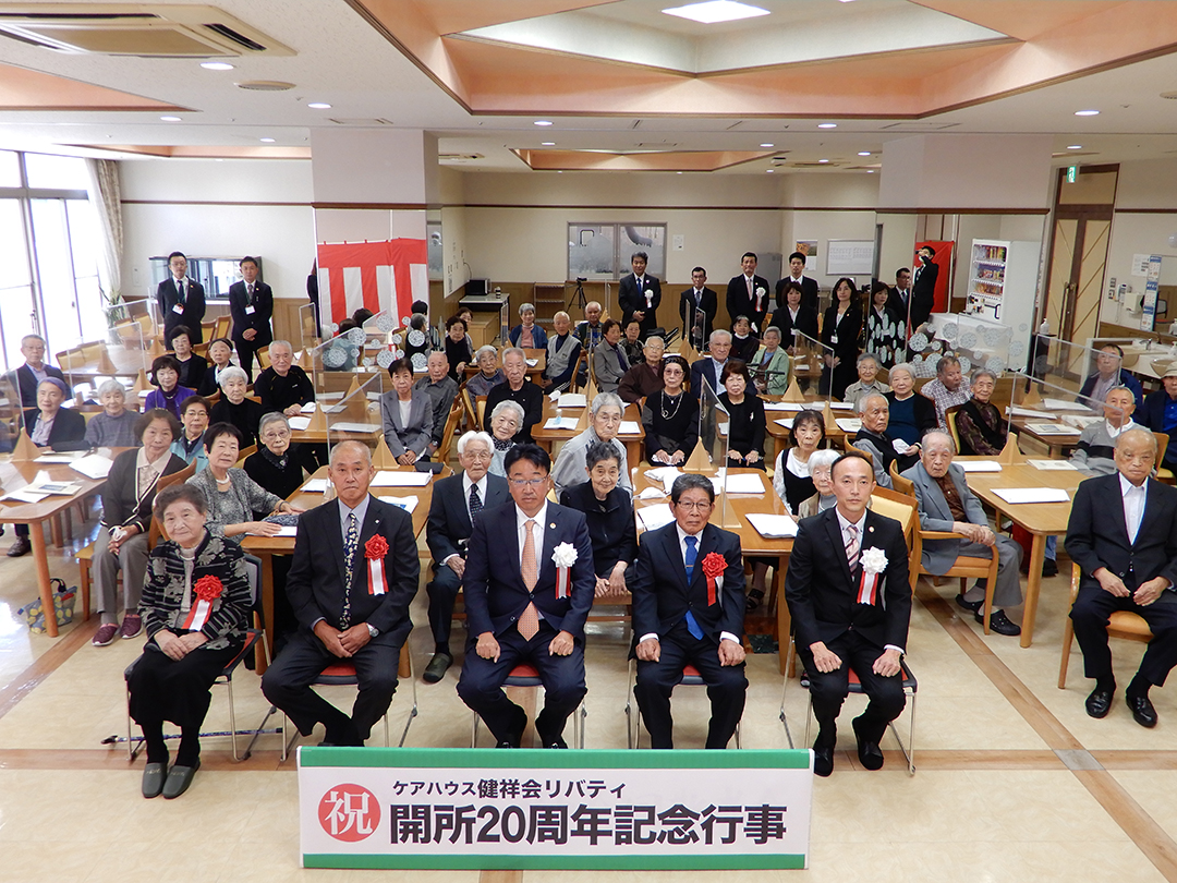 ケアハウス健祥会リバティが開所20周年を迎え、ご入居くださった皆様とそのご家族、地域の皆様への感謝を込めて記念式典を開催しました。