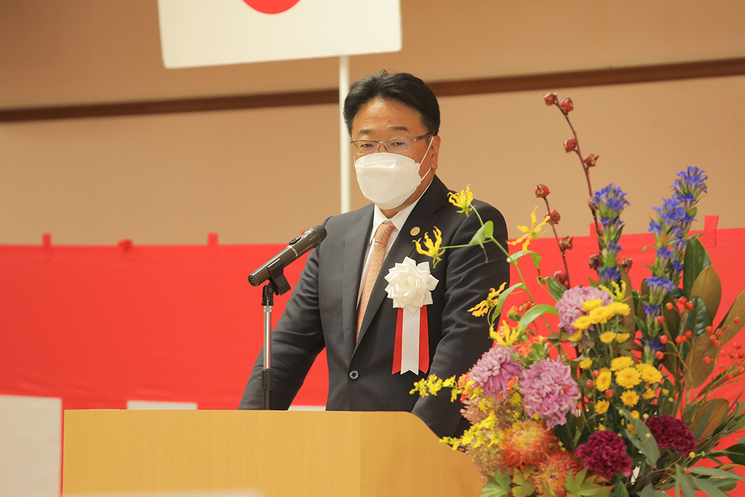 冒頭、「舞踏会-健祥会のうた-」の斉唱に続いて、健祥会グループ理事長中村太一がご挨拶申し上げました。