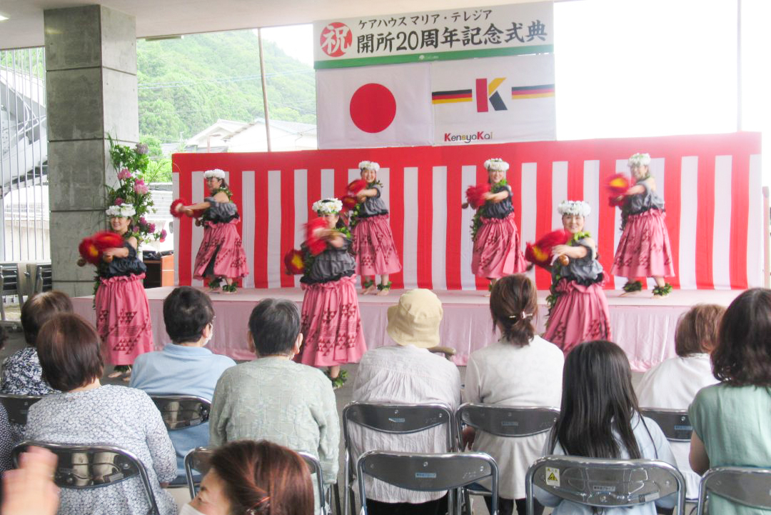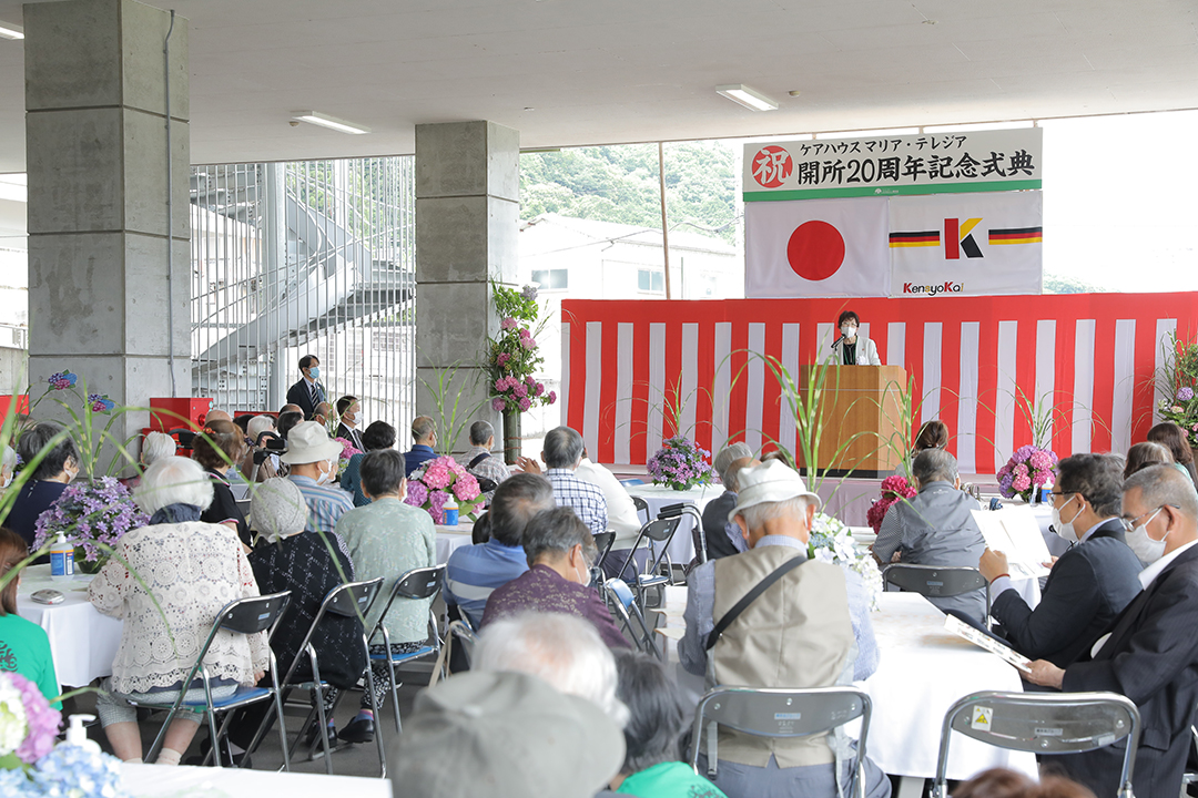 ケアハウス マリア・テレジアの開所20周年記念式典にご参加いただき、ありがとうございます。本日は第17回あじさい祭も同時開催され、多くのご利用者様、ご家族様、地域の皆様にご参加いただけることを大変嬉しく思いますとともに、日頃よりご支援ご協力いただき、深く感謝申し上げます。