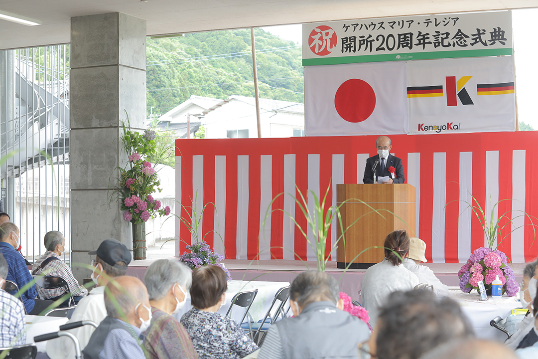ケアハウス マリア・テレジアの開所20周年をお祝い申し上げます。多くの方々が参列され、盛大に開催されることを喜ばしく思いますとともに、日頃より本町の福祉行政にご支援・ご協力をいただき、感謝申し上げます。