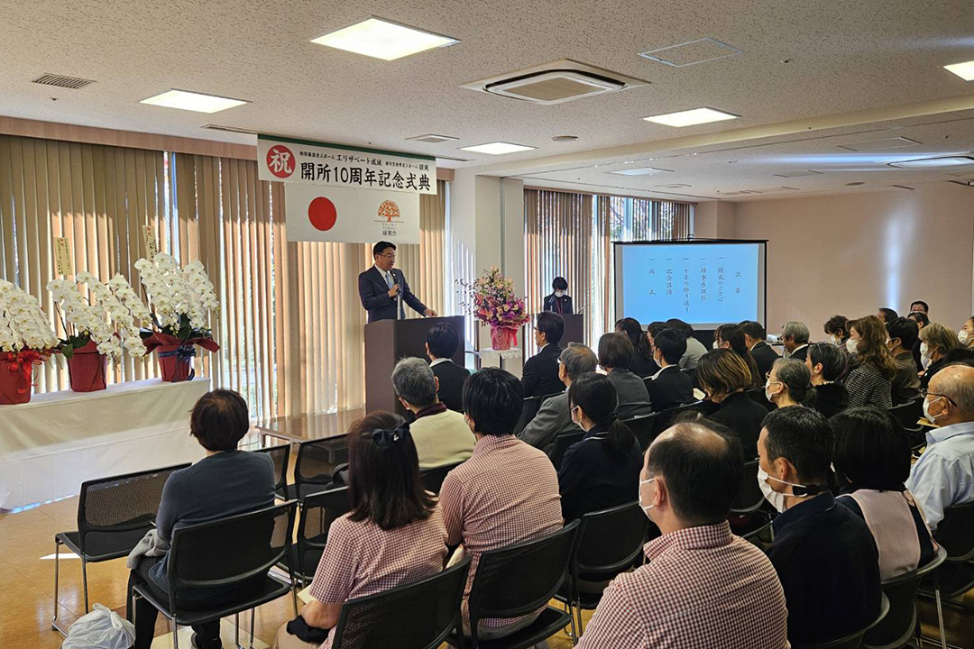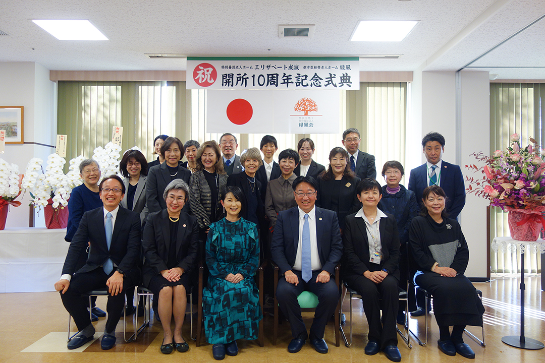 健祥会グループの東京初の施設、特別養護老人ホームエリザベート成城と都市型軽費老人ホーム緑風が開所10年を迎え、地域の皆様、利用者様、ご家族への感謝を込めて記念式典が開催されました。