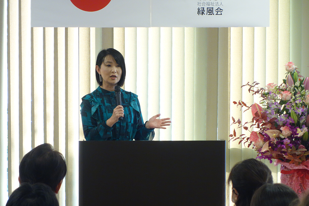10周年の記念にと企画したのは、フリーアナウンサー 小島奈津子氏のご講演。「義母と私〜笑顔の秘訣」と題して、ご自身の介護経験をあたたかく心に染み入る言葉で語ってくださいました。