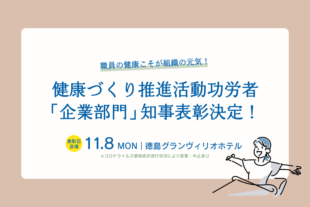 この賞は、健康づくりに取り組む事業所の輪を広げ、団体・企業内での健康づくりをさらに促進するために徳島県により設けられたもの。2014年から実施されており、従業員や地域住民の健康づくり活動を積極的に行い、他の模範となっている団体・企業に贈られます。