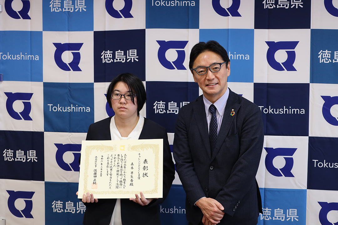 この賞は、長年にわたって職業人として活躍する障がいのある人に徳島県知事から贈られるもので、その功績を顕彰するとともに、広く県民に周知することで障がいのある人の雇用を促進するために設けられています。