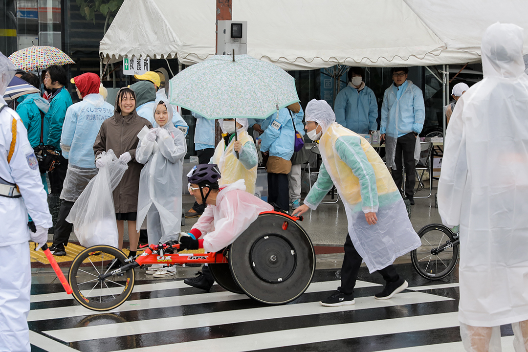 健祥会グループでは、2016年の第9回大会より毎年、職員有志がボランティアとして六条大橋北詰の第4給水所を担当しています。さらに昨年初めて設けられた競技用車いすによる「車いすロードレース」にも、引き続き今年も協力しました。