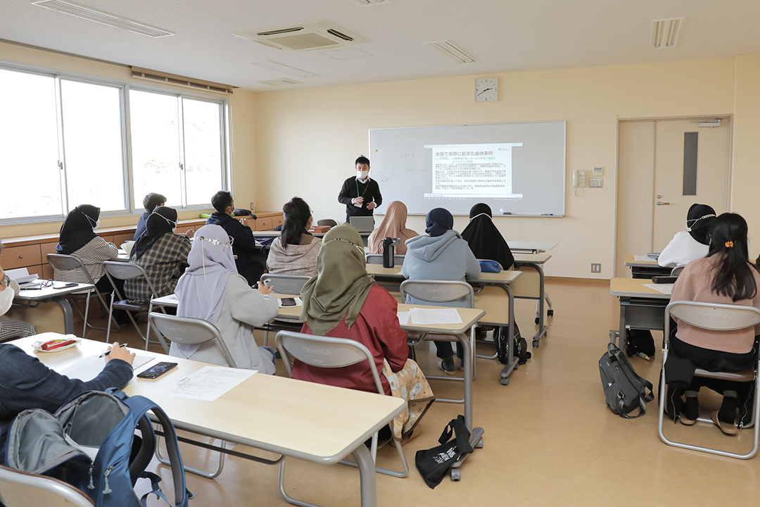 徳島の19名はグループ本部に隣接した寮に滞在し、「EPA介護福祉士候補者就労前研修プログラム」に添って、介護福祉士としての心構えや生活習慣にはじまり、安全衛生や5Sの励行、法令遵守、感染症予防や事故防止、身体拘束廃止、虐待防止などについて学ぶとともに、日本語教育や国家試験に向けてのオリエンテーションも受けました。