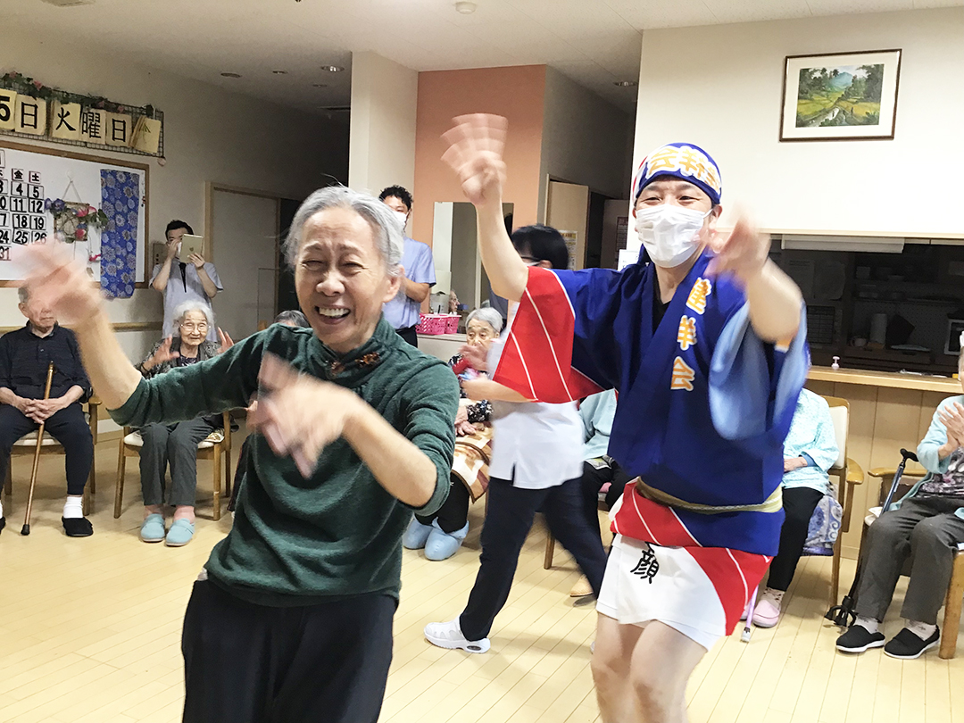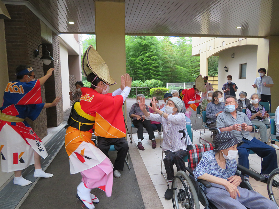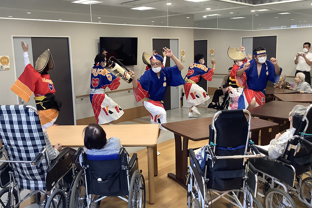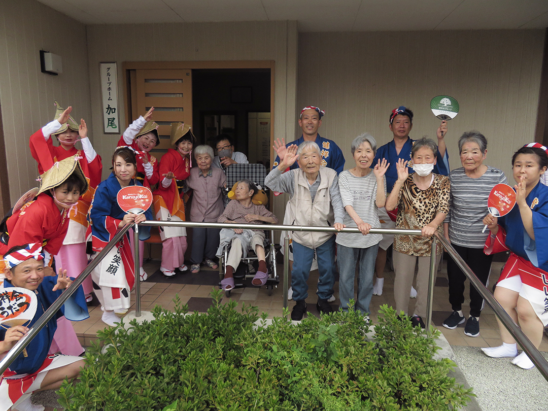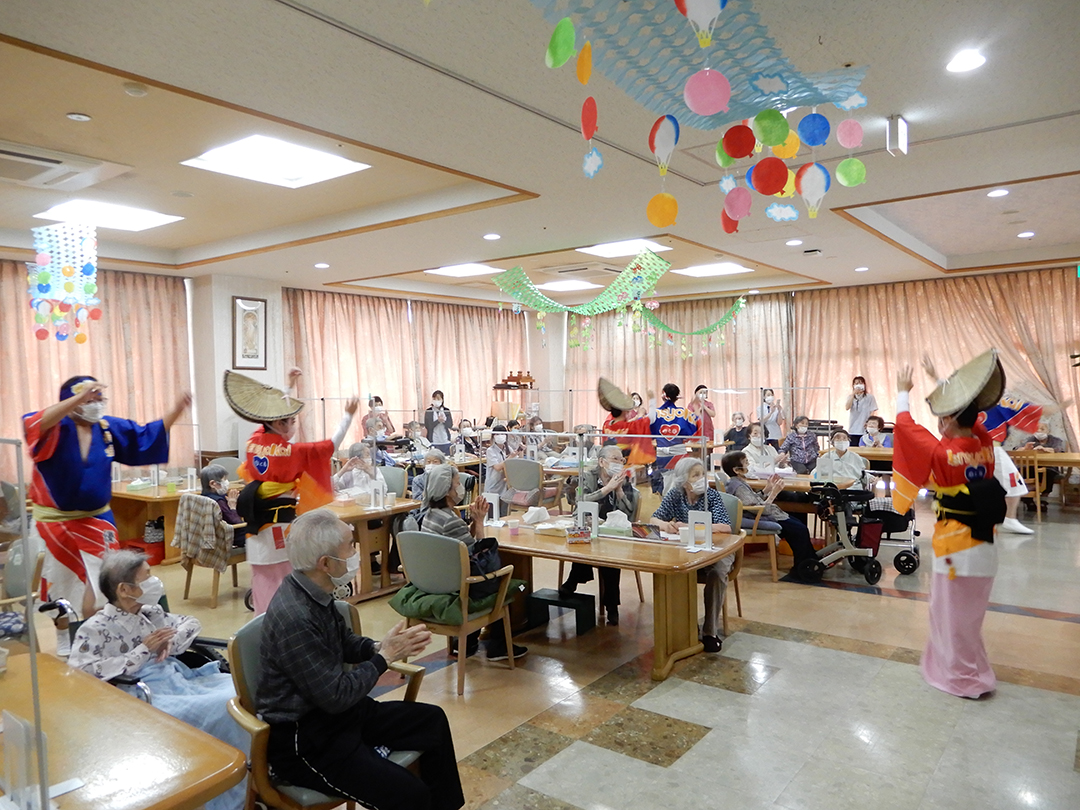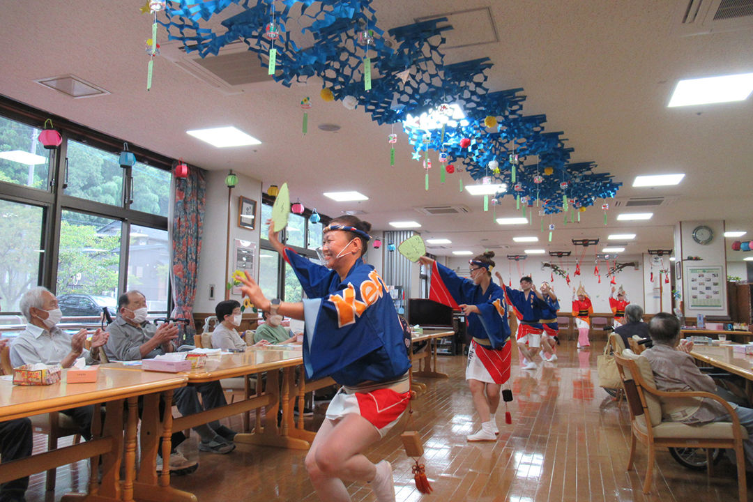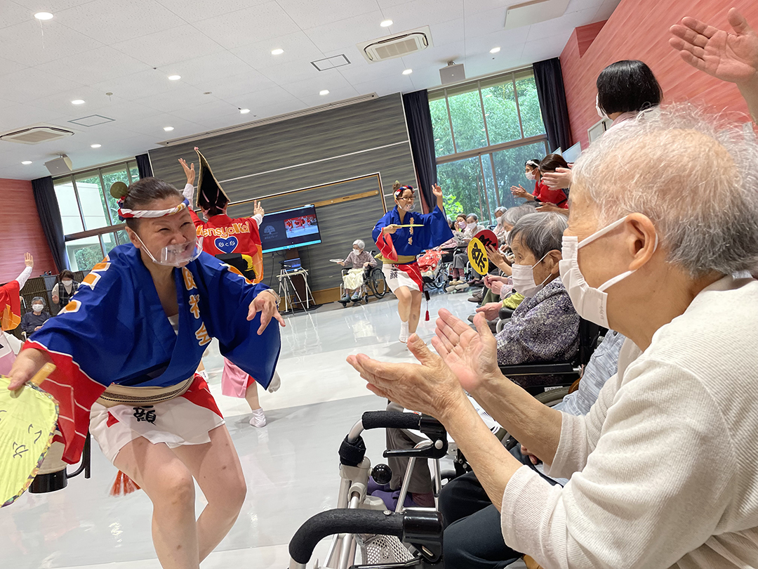 また、施設では、KIRARI WOMANネットワークの活動として、「出張!健祥会グループ連 阿波踊り2023 by KIRARI」を開催。地域ごとに職員有志で結成したミニグループ連が各施設へ踊り込み、利用者様にお盆の賑わいを届けました。