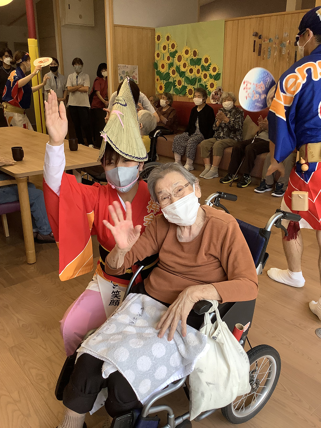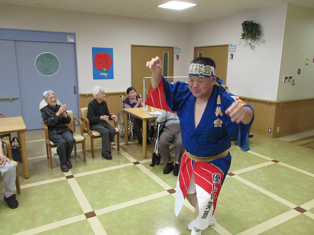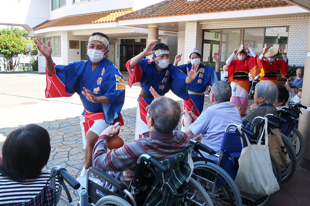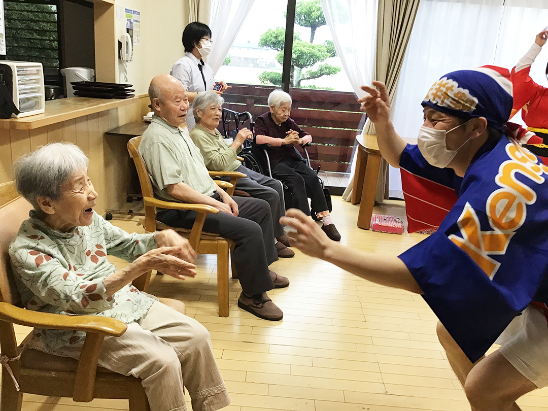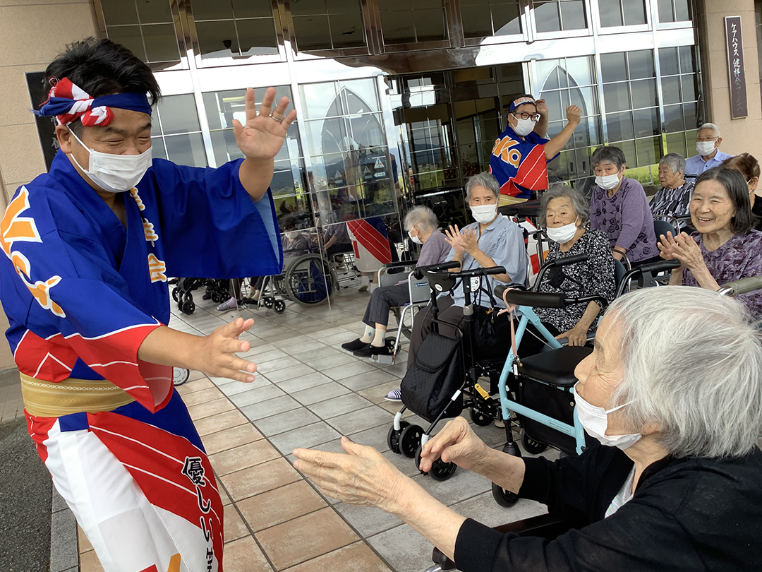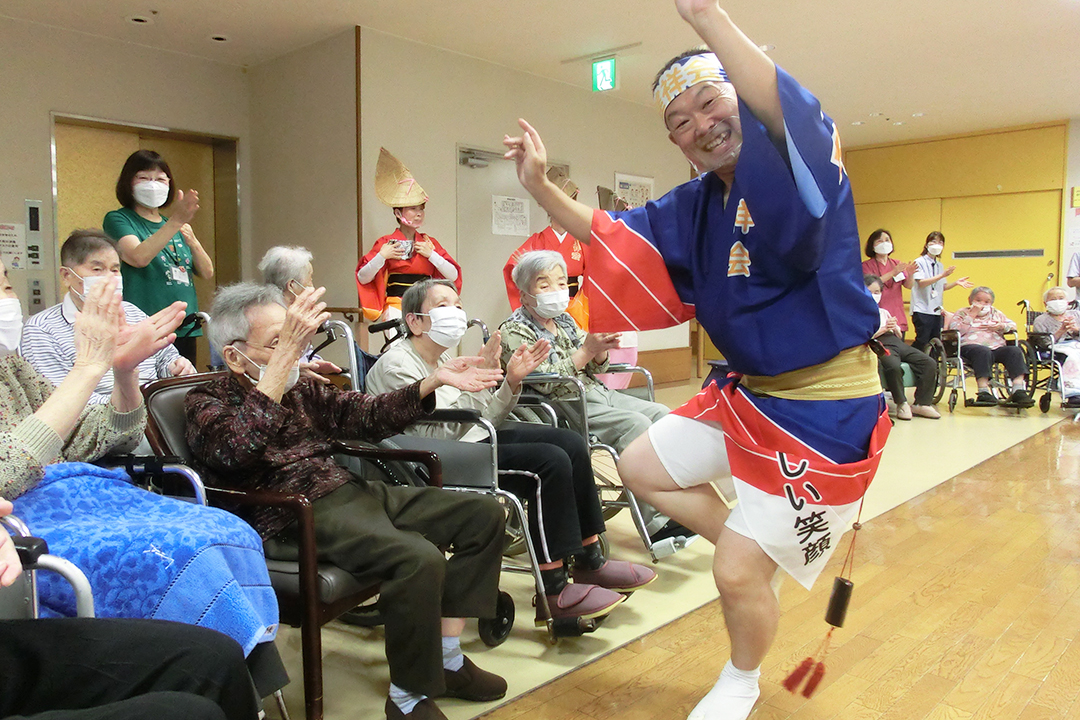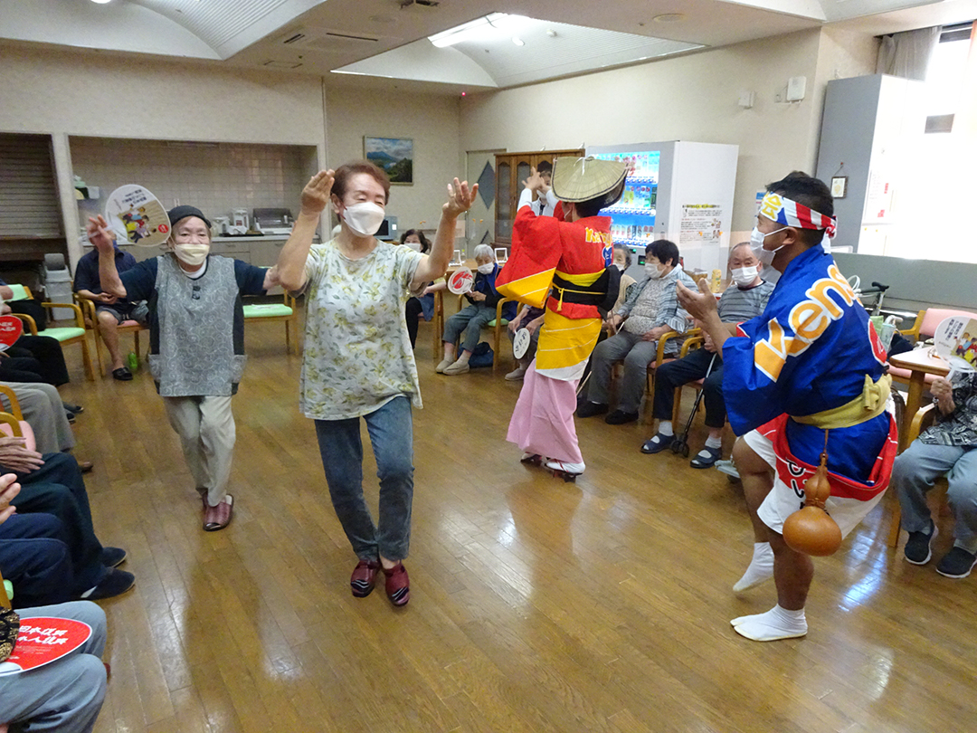 また、施設では、KIRARI WOMANネットワークの活動として、「出張!健祥会グループ連 阿波踊り2023 by KIRARI」を開催。地域ごとに職員有志で結成したミニグループ連が各施設へ踊り込み、利用者様にお盆の賑わいを届けました。