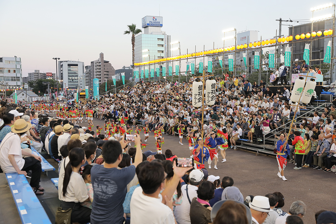 ロゴマークの「明日の木」をデザインした揃いの法被に身を包んだ可愛い踊り子に、桟敷からはあたたかな拍手とたくさんの笑顔をいただきました。ご声援ありがとうございました。