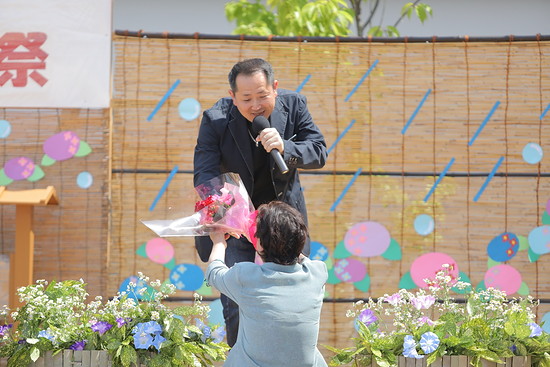 今年、「第4回日新祭」には、ヘルスおよびデイケアの利用者様とご家族、地域の方々に加え、近隣の健祥会家康、健祥会うだつ、健祥会シェーンブルンの利用者様も参加くださり、約240人の皆様が集って賑やかに開催されました。