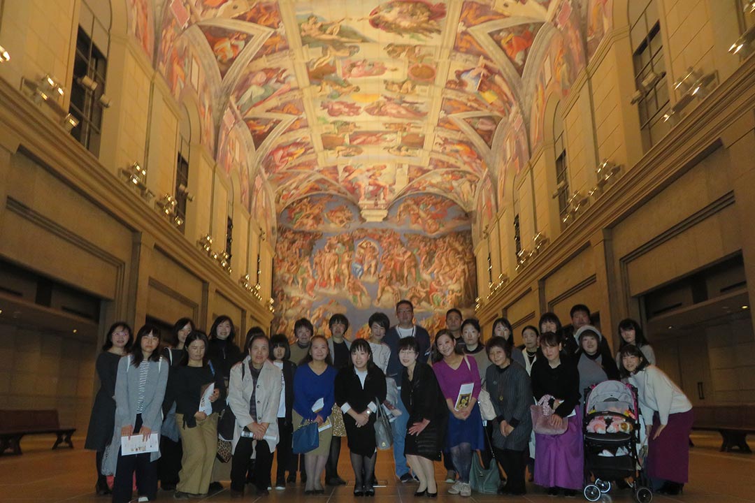 まず、ヴァチカン宮殿の礼拝堂を原寸大で再現したシスティーナ礼拝堂で、ミケランジェロの天井画の美しさと礼拝堂に漂う荘厳さに胸打たれながら、記念撮影。