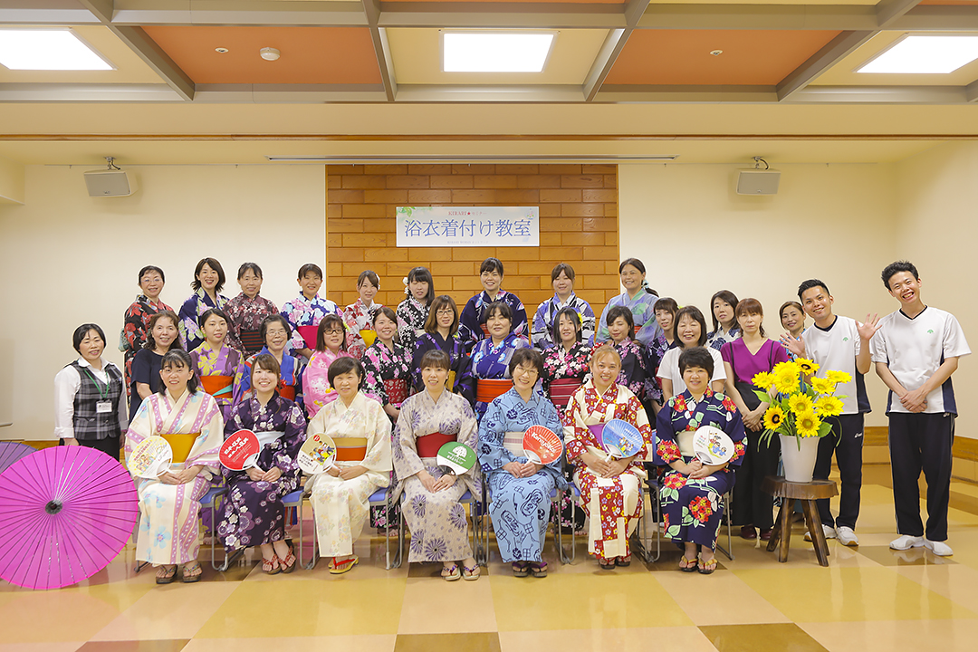 第一回は、浴衣着付け教室。7月12日、健祥会家康で開催されました。