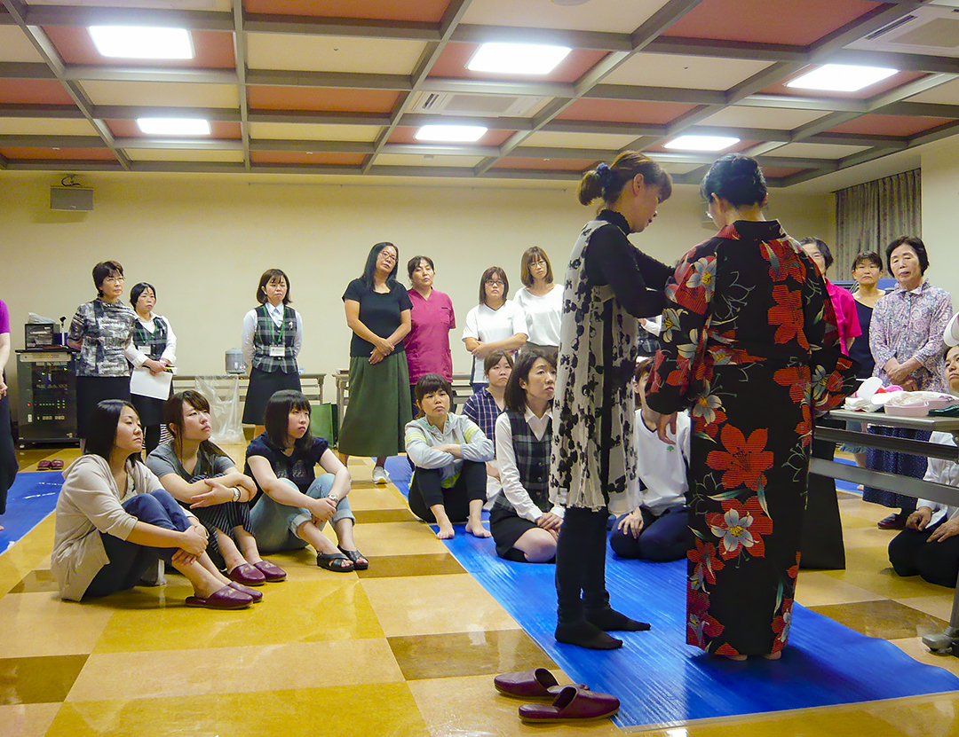 「KIRARI WOMANネットワークの活動は、今年4年目を迎えます。ネットワーク誕生当初から開催しているセミナーはとても人気で、毎回たくさんの方に参加いただいています。今回の浴衣着付け教室は、脇町の美容師さんを講師にお招きし、施設職員もサポートしてくれます。
