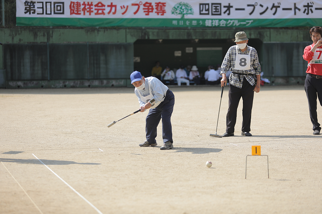 健祥会カップ争奪東四国国体記念四国オープンゲートボール選手権大会が、雲ひとつない美しい秋空のもと、高松市ホタルと文化の里運動場で開催されました。
