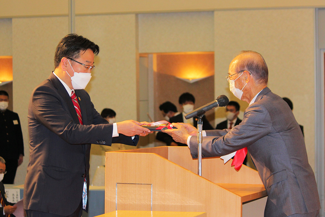 優勝した健祥会キングが「スポーツ特別優秀者表彰」、準優勝の健祥会エンペラー、第3位の健祥会リバティが「優秀者表彰」を受け、それぞれメンバー全員が記念の盾をいただきました。