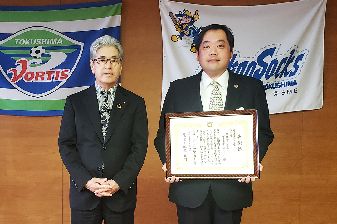 先日の公益社団法人徳島県スポーツ協会からの賞に続き、大変晴れがましい賞をいただき、本当に有り難く嬉しく、厚く御礼申し上げます。