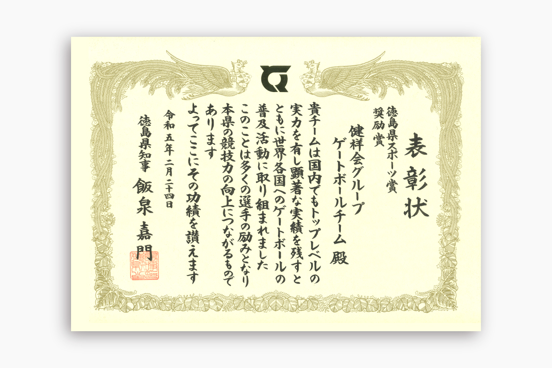健祥会グループゲートボールチームが「徳島県スポーツ賞」を受賞しました。