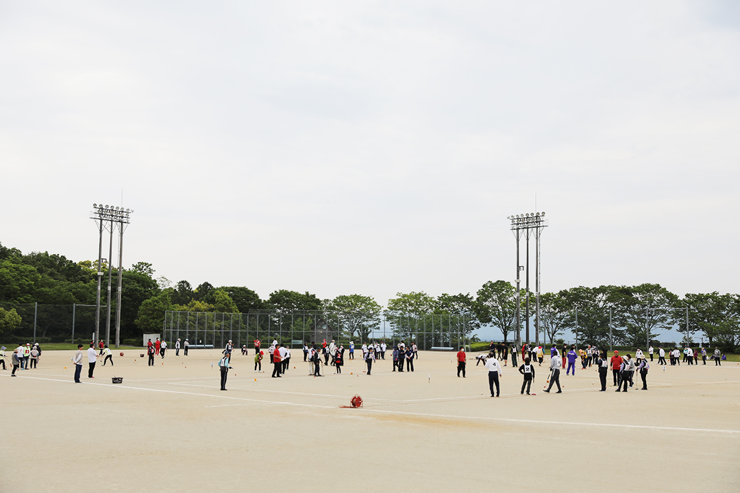 県内各地と香川県、高知県から、32チーム・170名の皆様のご参加を得て、阿波市土成町・緑の丘スポーツ公園で第42回健祥会カップ争奪徳島オープンゲートボール選手権大会が開催されました。あいにくの曇り空でしたが、初夏のみずみずしい緑と小鳥のさえずりの中、開会式が行われました。健祥会グループからも6チームがエントリーです。