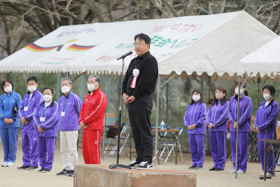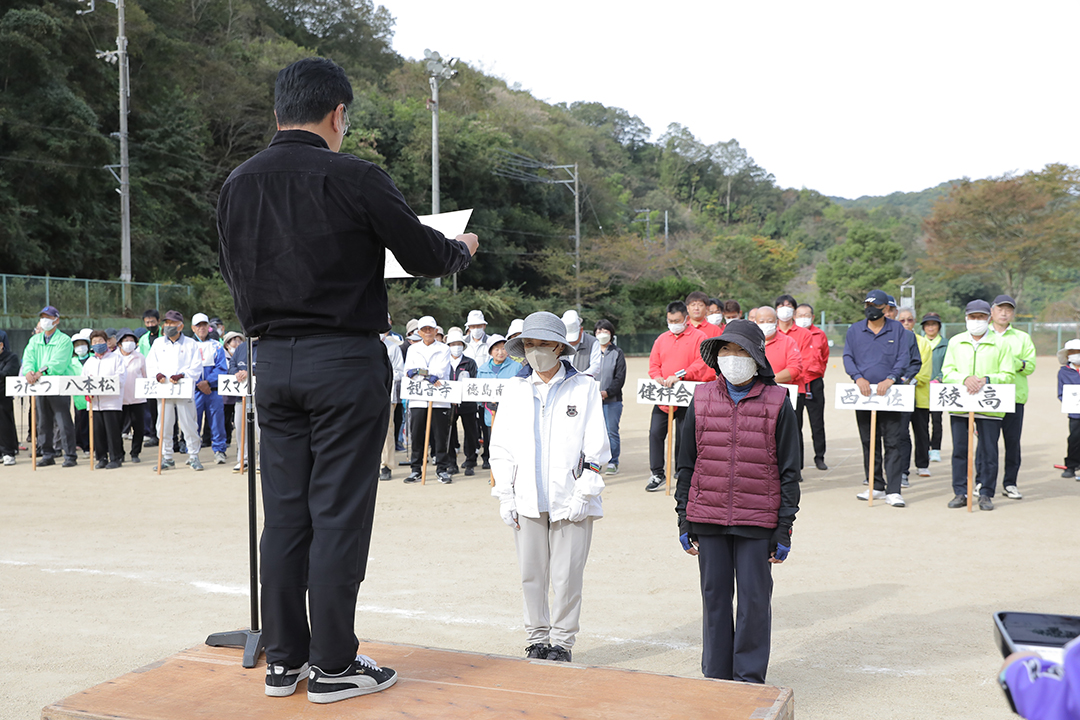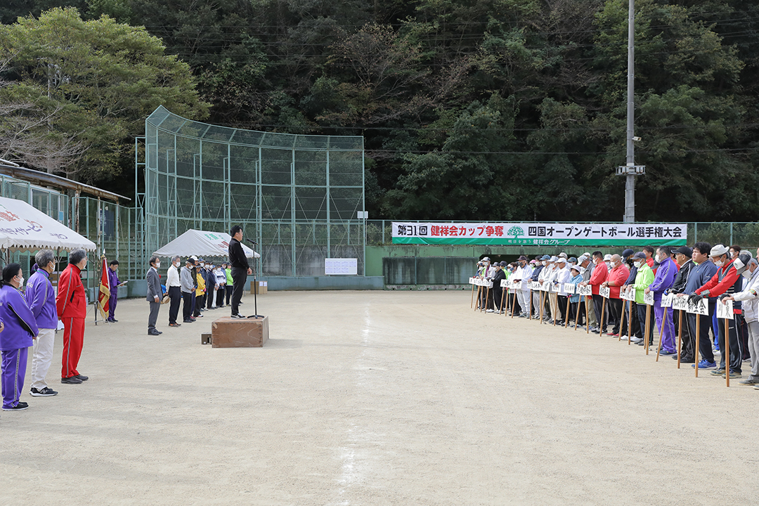 東四国国体の開催を記念してはじまった本大会も31回を数えました。昔は多くのチームが集った本大会ですが、人口減少とともに、またコロナ禍も手伝って、参加チームは減少しています。しかし、ゲートボールを愛するプレイヤーがこうして今年も集うことができ嬉しく思います。高齢青年チーム賞のフレッシュチームには、ますます健康で、私たちの目標となってプレイを続けていただきたいと思います。