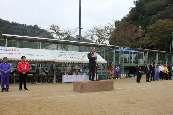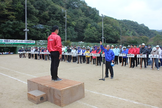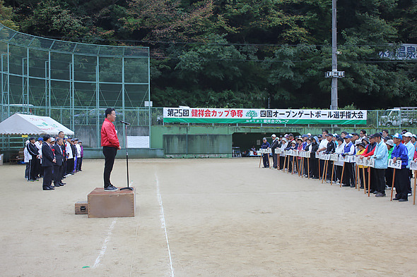 ご参加くださったのは、25歳から92歳まで、48チーム246名の皆様。大会名誉会長である高松市長大西秀人様のご挨拶を塩江支所長岡本正昭様にご代読いただくとともに、お忙しい中、ご来賓として駆けつけてくださった地元香川県の参議院議員 木村義雄先生、香川県議会議員綾田福雄先生、高松市議会議員佐藤好邦先生から、熱い激励のご祝辞をいただきました。