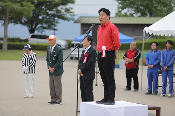 開会式では、来賓としてお越しくださった 安丸学 阿波市企画総務部長が、「適度な運動とバランスのとれた食事で健康寿命の延伸に努め、ゲートボールで毎日を生き生きと過ごし、親睦と健康の輪を広げてください」と藤井正助 阿波市長よりのメッセージを代読くださいました。