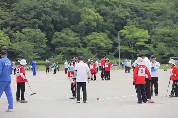 徳島オープンゲートボール選手権大会が第37回を迎え、阿波市土成町、緑の丘スポーツ公園で催されました。ご参加くださったのは、県内各地、さらに香川県や兵庫県からの合計48チーム・約280名。子どもさんからご高齢者まで、三世代、四世代の皆様です。健祥会グループからも5チームが参加。心配したほどの強い日差しや気温の上昇もなく、美しい初夏の緑の中、心地よい汗をかきながら、競い合い、ふれあい、それぞれにゲームを楽しむ1日となりました。