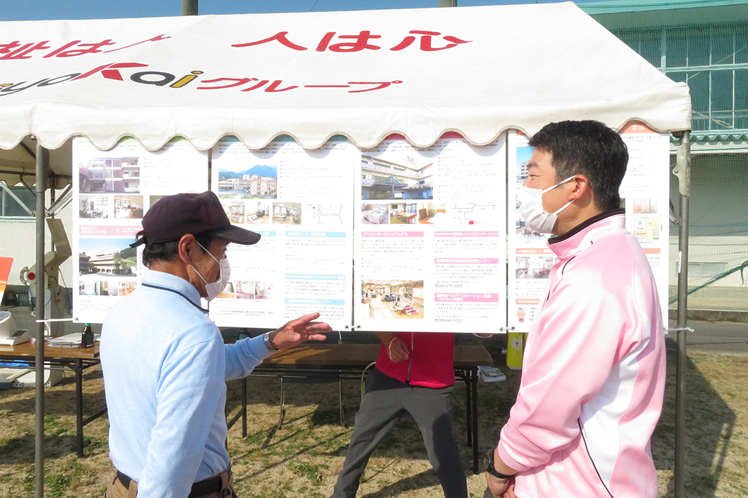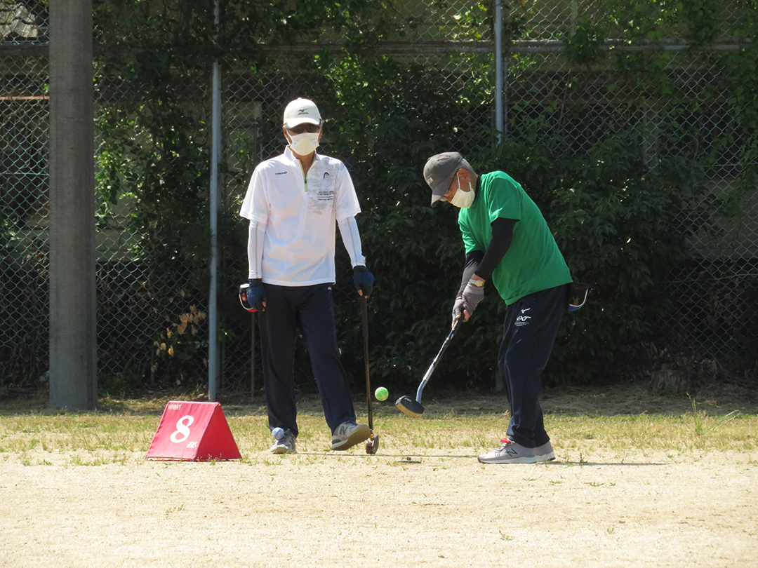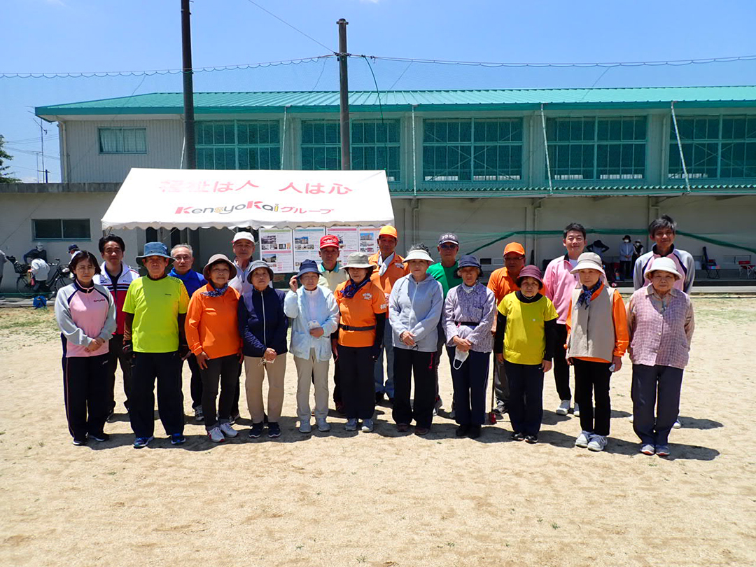 参加くださったのは同協会所属の約100名のグラウンド・ゴルファーの皆様。梅雨入り前の爽やかな気候の中、思い切りプレイを楽しんでくださいました。健祥会からも小松島、佐那河内、上勝の施設の9名の職員が加わり、地域の馴染みの皆様と笑顔を交わしながらの参加でした。
