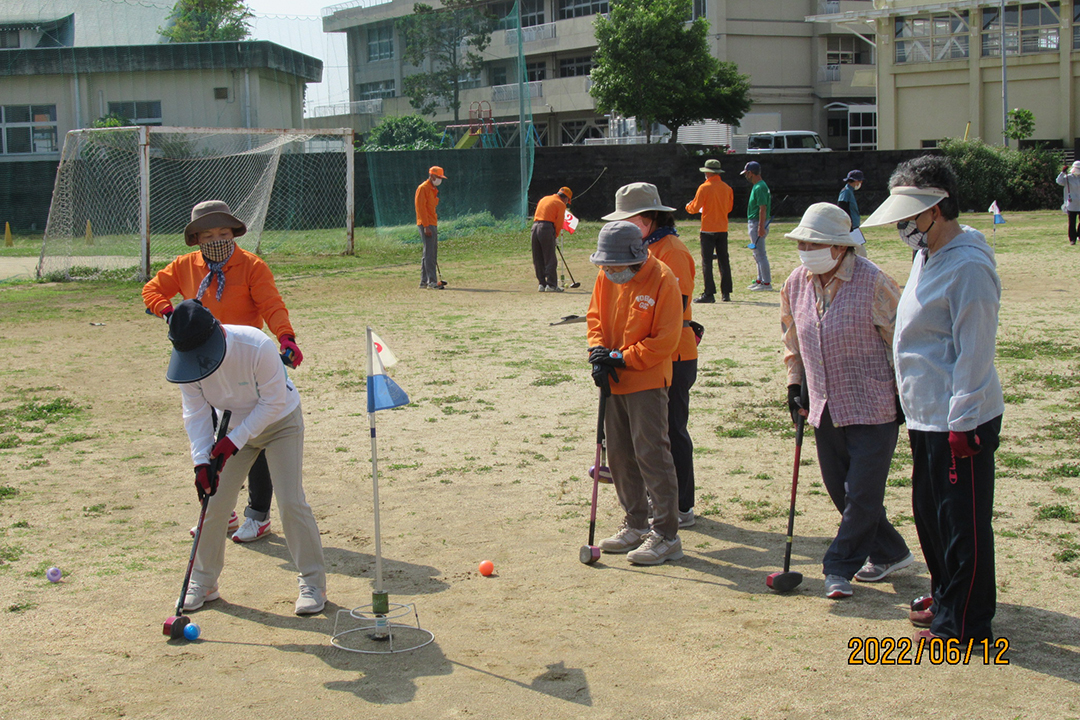withコロナの実践として、5月のゲートボール大会、4月のグラウンド・ゴルフ大会に続き、グラウンド・ゴルフの健祥会ふれあい大会が小松島市の坂野運動広場で開催されました。生涯スポーツであるグラウンド・ゴルフを通して小松島地域の皆様に健康と生き甲斐を発信したいとはじまった本大会は、小松島市グラウンド・ゴルフ協会主催、社会福祉法人健祥会協賛。コロナによる2年の中止を経て、今年第18回を迎えました。