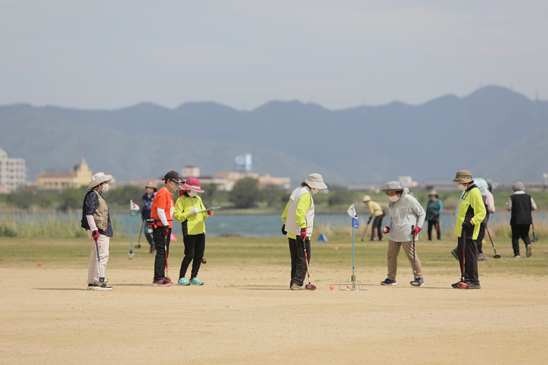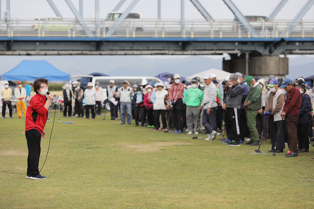 心地よい初夏の風が吹き渡る徳島市民吉野川南岸運動広場で、徳島県グラウンド・ゴルフ協会主催、社会福祉法人健祥会協賛の第19回健祥会杯グラウンド・ゴルフ大会が開催され、徳島県グラウンド・ゴルフ協会所属の83チーム、650名の皆様がご参集くださいました。
