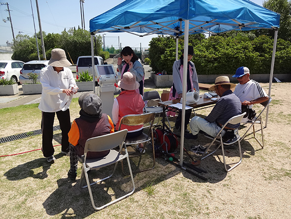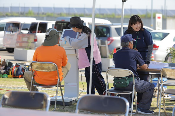 会場には健祥会スポーツ大会恒例の高機能体組成計が登場。身体の健康度の判定と健康づくりのためのアドバイスをたくさんの方が熱心に受けてくださいました。