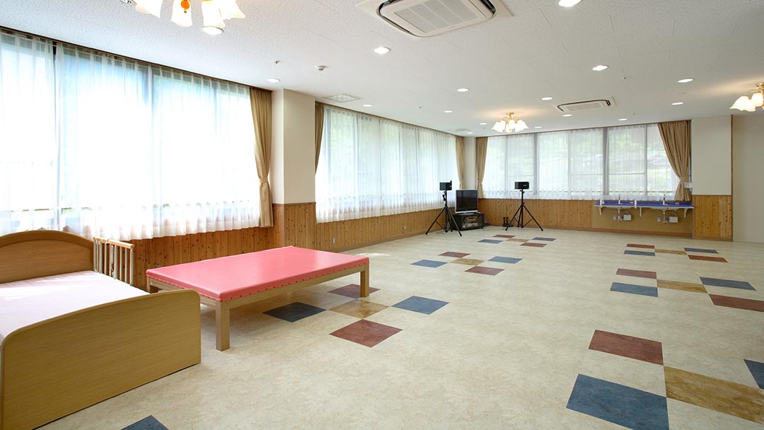 きとうゆずでは利用者様の転倒予防のため、生活の中でリハビリテーションを行う工夫をしています。ボールや棒などの器具を使った身体に無理のない筋力訓練や、音楽に合わせた体操やレクリエーションで、笑いながら楽しみながら身体を動かしていただいています。