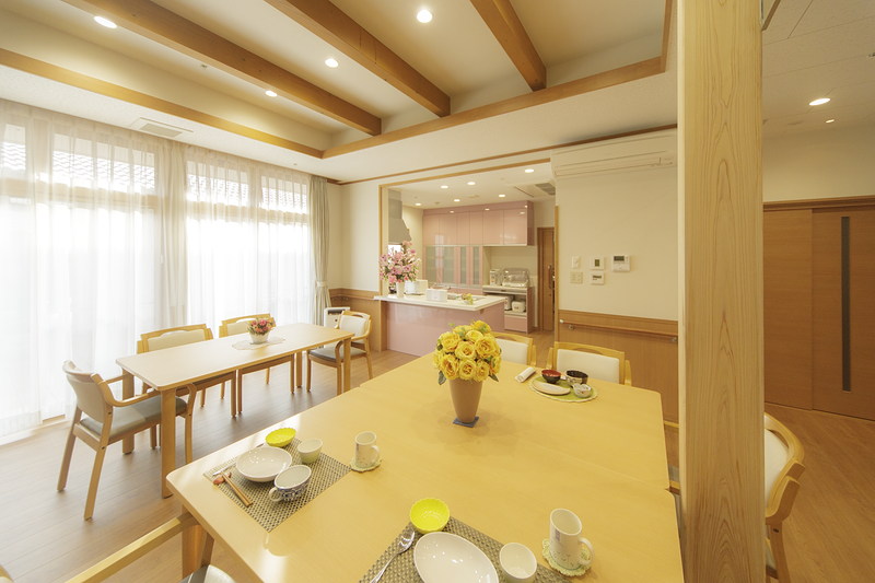 介護が必要になっても、認知症になっても、できる限り住み慣れた地域で暮らし続けられることをめざした認知症グループホームです。ご自宅で使い慣れた家具や置物、写真などに囲まれた生活を継続していただけます。全室個室で、プライベートを確保できる一方、生活空間は9人の単位でつくり、同居者や職員と家族のように落ち着いた小集団生活が楽しめます。また防災設備として、スプリンクラー設備・緊急通報システム等を備えています。