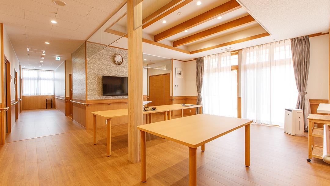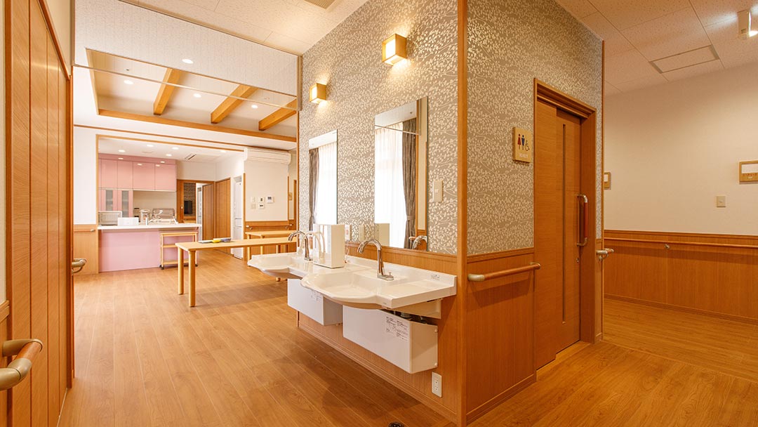 - ユニット間のキッチン・洗濯室等の水回り動線を短くし、利用者様、職員両方にとって使いやすい設計です。