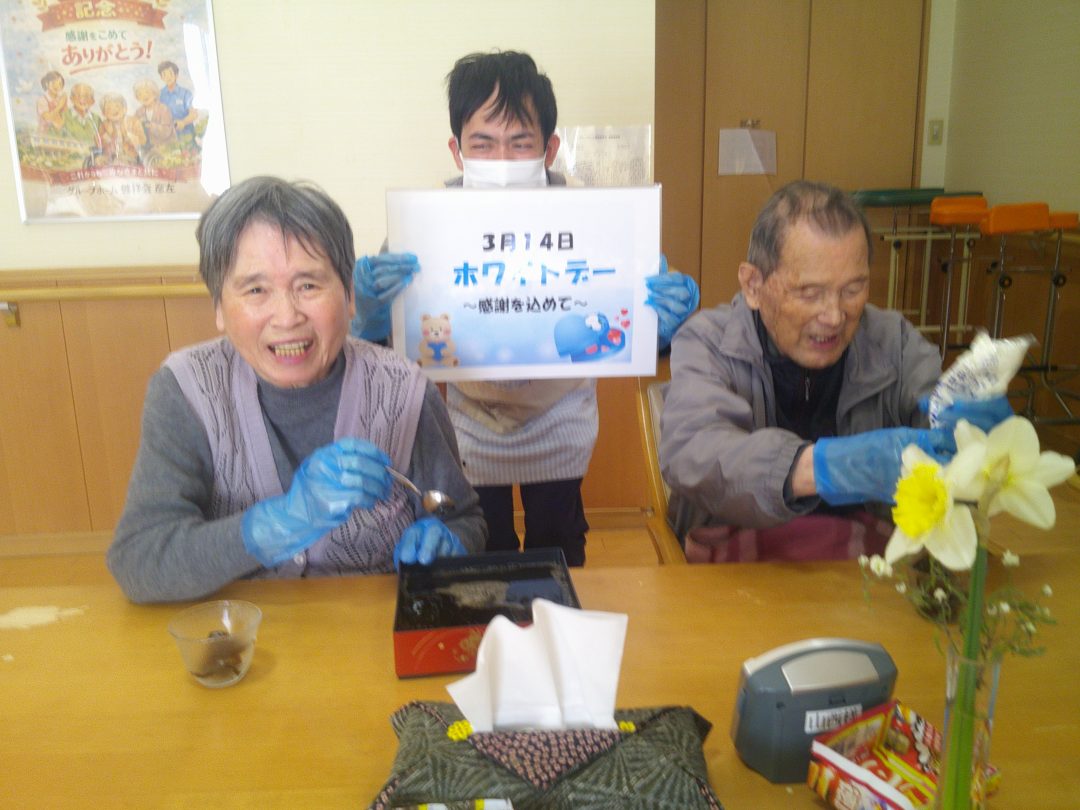 | 3月 | ホワイトデー | 職員手作りお菓子を女性の方にプレゼントします。 |