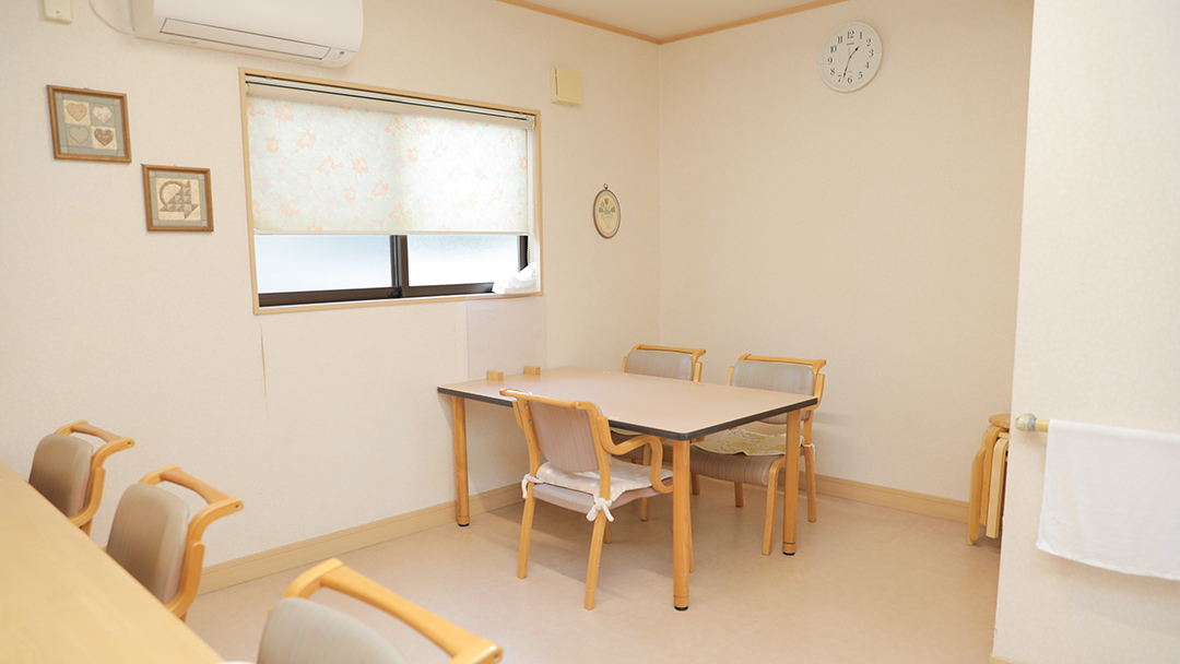 | 1階 | 個室、居間、タタミコーナー、食堂、台所、脱衣所、浴室、洗濯コーナー、玄関ホール、倉庫、更衣室、スタッフルーム、トイレ |
