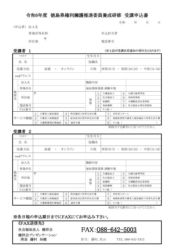 介護施設等の従事者、管理者を対象に、高齢者虐待防止法の趣旨の理解、身体拘束廃止の推進等、利用者の権利擁護の視点に立った介護に関する実践的手法を修得することにより、介護現場での権利擁護の取組を推進し、指導する人材を養成することを目的とします。