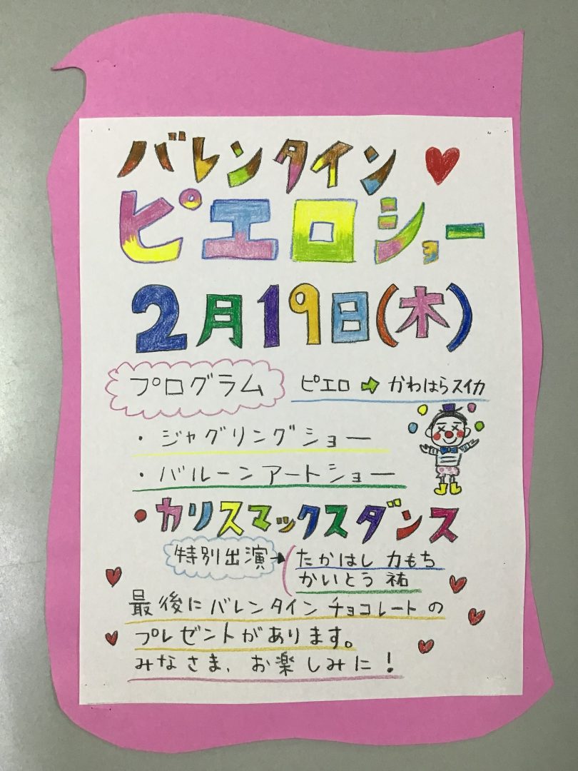 | バレンタインデー | 男性の入所者様のためにプレゼントを用意しています。 | |